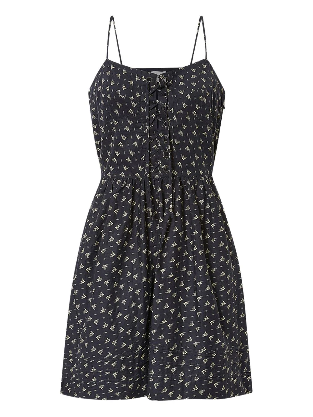 DRYNA floral-pattern mini dress Highlights - Black - Floral print - Spaghetti straps - Lace-up detail - Elasticated waist - Side zip fastening Imported Composition Cotton 100% Washing instructions Read Manufacturer Guidelines