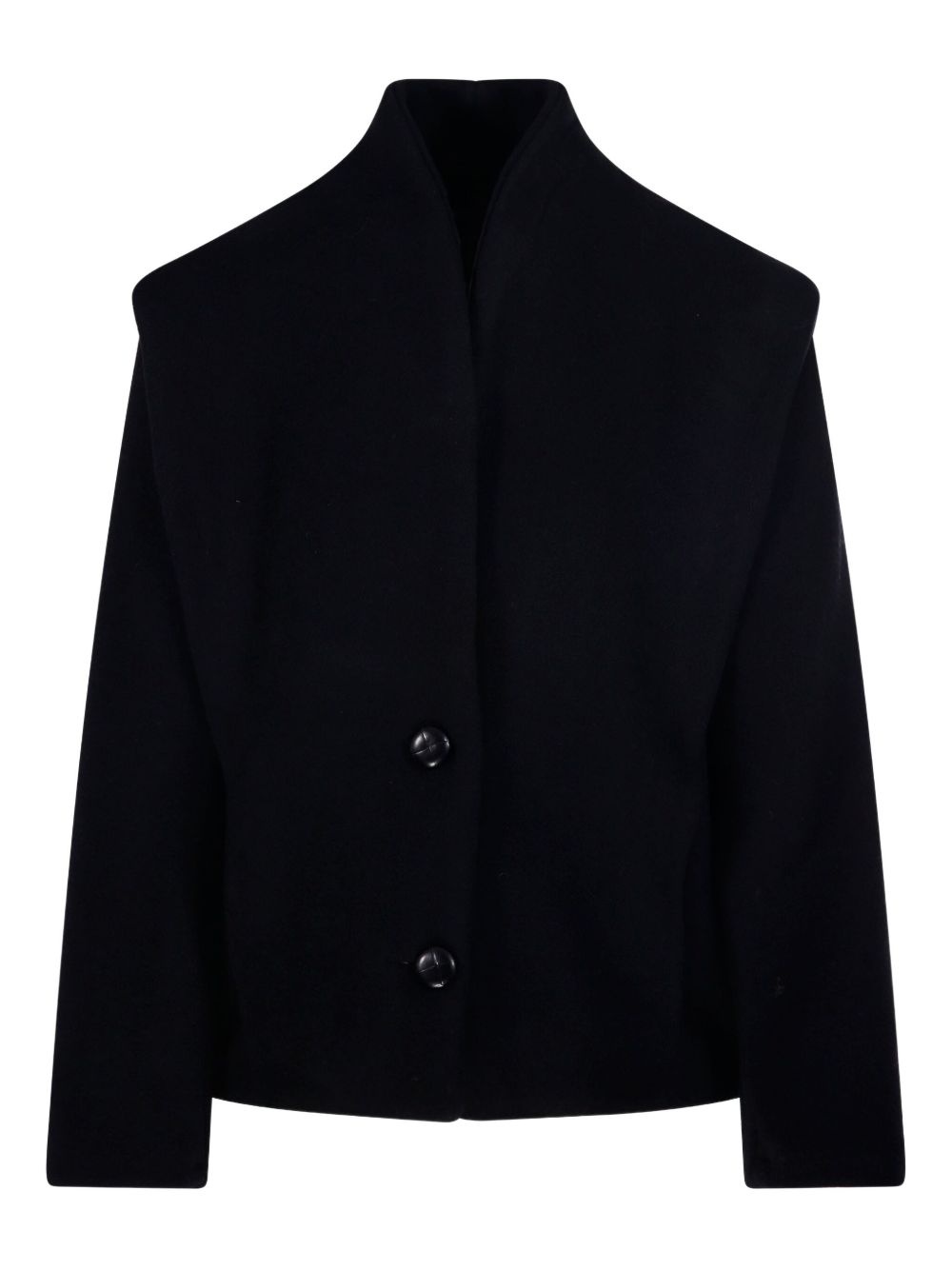 Dyogo padded-shoulder button coat Highlights - Black - Padded shoulders - Button fastening - High neck - Long sleeves - Straight hem Imported Composition Viscose 100%, Wool 75%, Polyamide 25% Washing instructions Read Manufacturer Guidelines