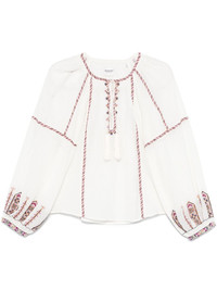 Fernanda blouse Highlights - White - Front tie fastening - Crew neck - Bishop sleeves Imported Composition Cotton 100%, Viscose 100% Washing instructions Dry Clean Only