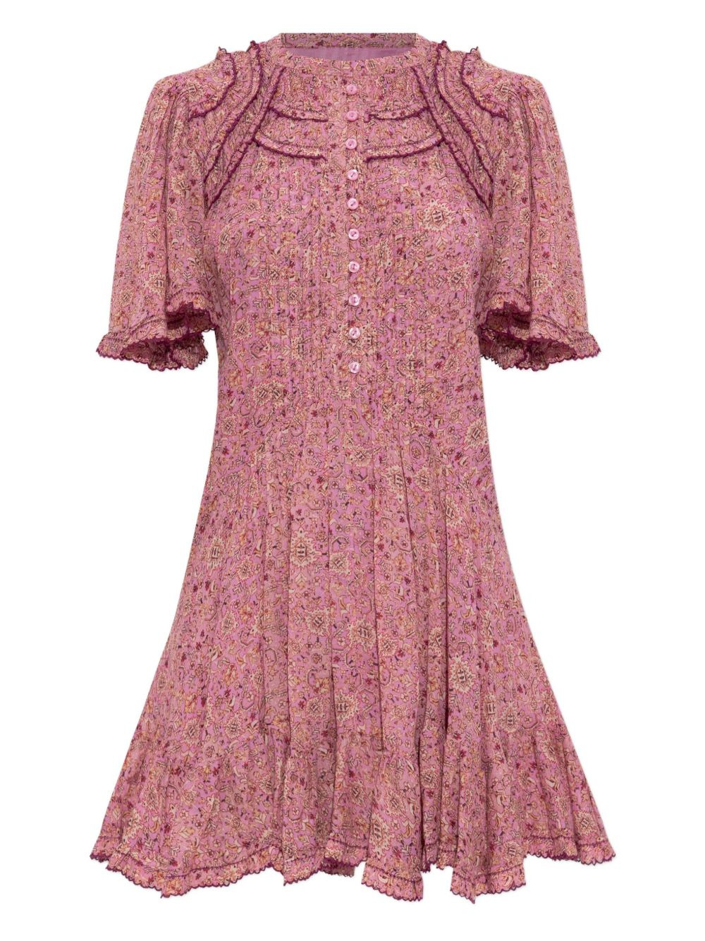 floral-print ruffled-details mini dress Highlights - Pink - Floral print - Ruffled neck - Button fastening - Short sleeves - Ruffled hem Imported Composition Cotton 100% Washing instructions Read Manufacturer Guidelines