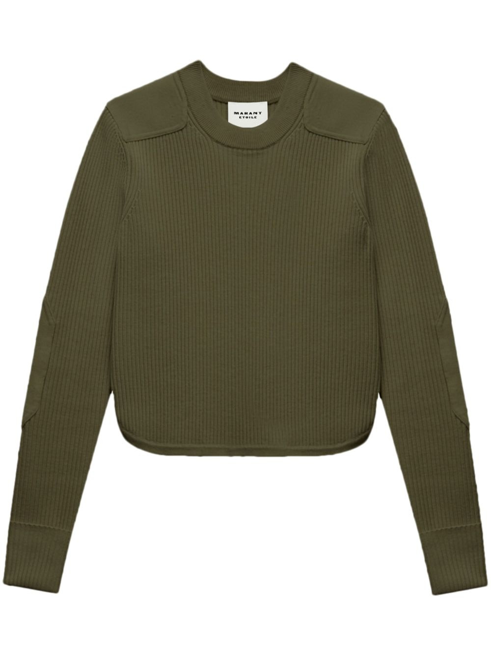 Gabyne sweater Highlights - Khaki green - Ribbed knit - Panel detailing - Elbow patches - Crew neck - Long sleeves - Curved hem Imported Composition Body: Merino 93%, Polyamide 6%, Elastane 1% SIZE & FIT FittingInformation Designed for a slim fit that sits just away from the body offering a close yet comfortable fit Made with a midweight knit, this piece offers some stretch Washing instructions Read Manufacturer Guidelines