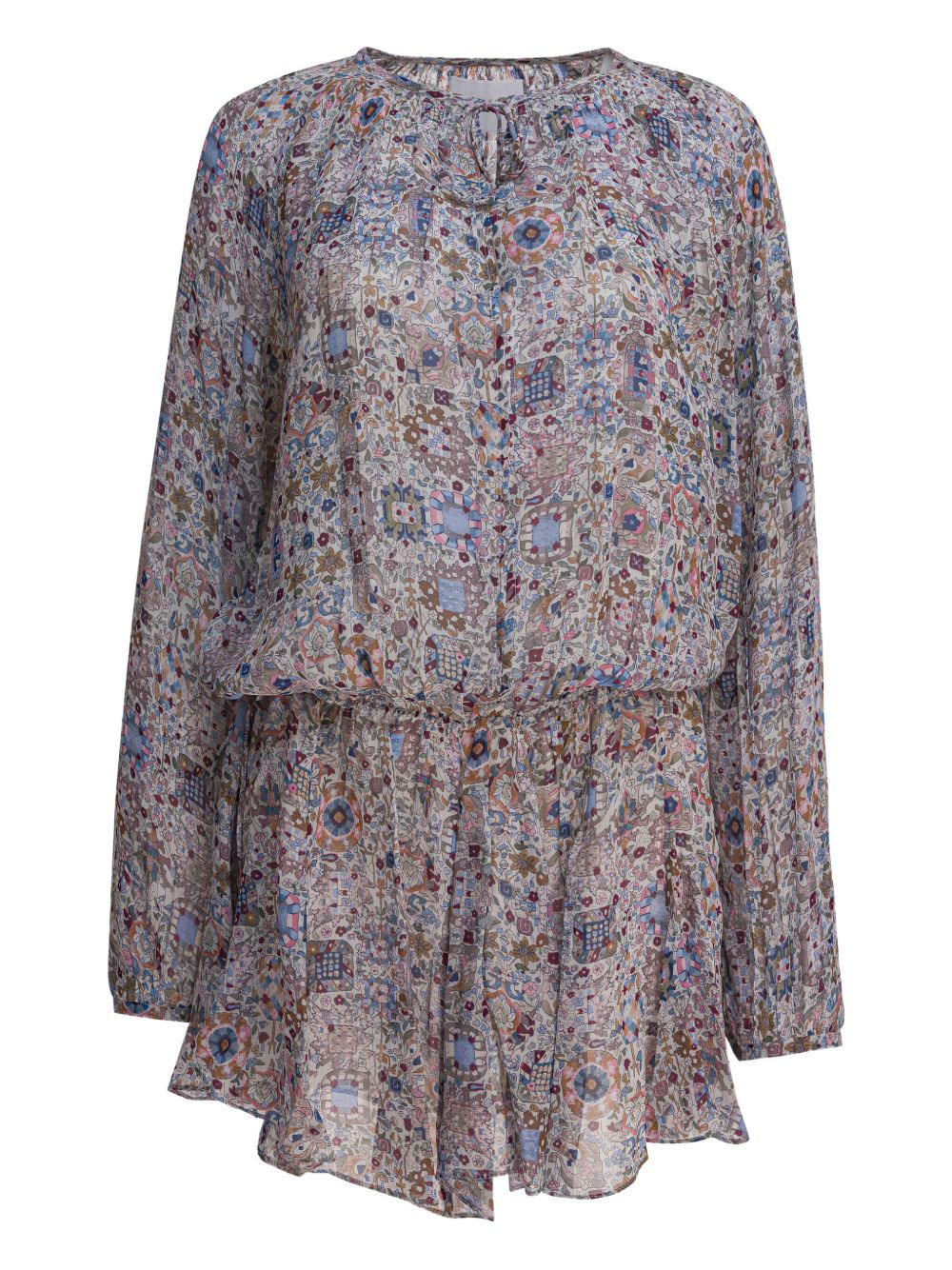 geometric-pattern mini dress Highlights - Pink - Geometric pattern - Elasticated waist - Long sleeves - Round neck Imported Composition Viscose 100% Washing instructions Read Manufacturer Guidelines