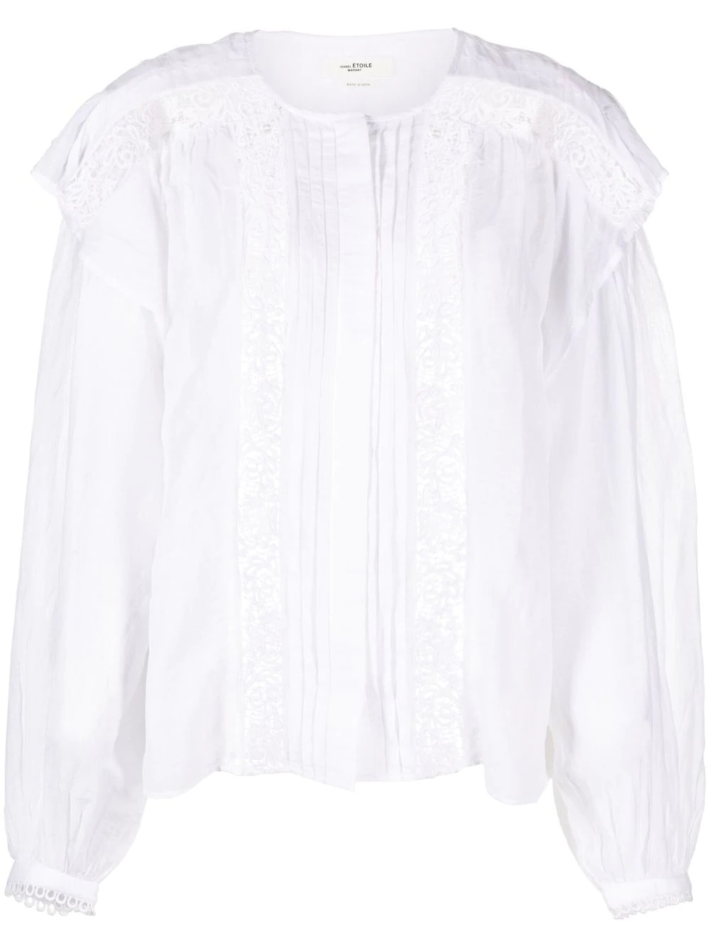 Georgina lace-detail blouse Isabel Marant Etoile blends a bohemian aesthetic with a traditional silhouette, as seen in this blouse. Despite its classic long-sleeve silhouette, the piece is accented with delicate lace panels across the front and shoulders. Imported Composition Cotton 67%, Viscose 33% SIZE & FIT Model measurements Height 5 ft 10 in(1.78 m) Bust/Chest 31.49 in(80 cm) Hips 35.43 in(90 cm) Waist 24.4 in(62 cm) Measurement LENGTH 24.8 in(63 cm) Washing instructions Hand Wash