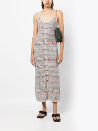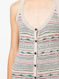 Haro sleeveless dress Highlights - Multicolour - Cotton-linen blend - All-over graphic print - Scoop neck - Front button fastening - Sleeveless - Straight hem Made in France Composition Body: Linen/Flax 73%, Cotton 27% SIZE & FIT Model measurements Height 5 ft 10 in(1.77 m) Bust/Chest 31.49 in(80 cm) Hips 35.43 in(90 cm) Waist 25.19 in(64 cm) Measurement HIPS 33.07 in(84 cm) LENGTH 49.21 in(125 cm) WAIST 29.13 in(74 cm) BUST 30.7 in(78 cm) FittingInformation This piece fits true to size. We recommend you get your regular size Cut for a slim fit Made with a mid-weight fabric Washing instructions Hand Wash
