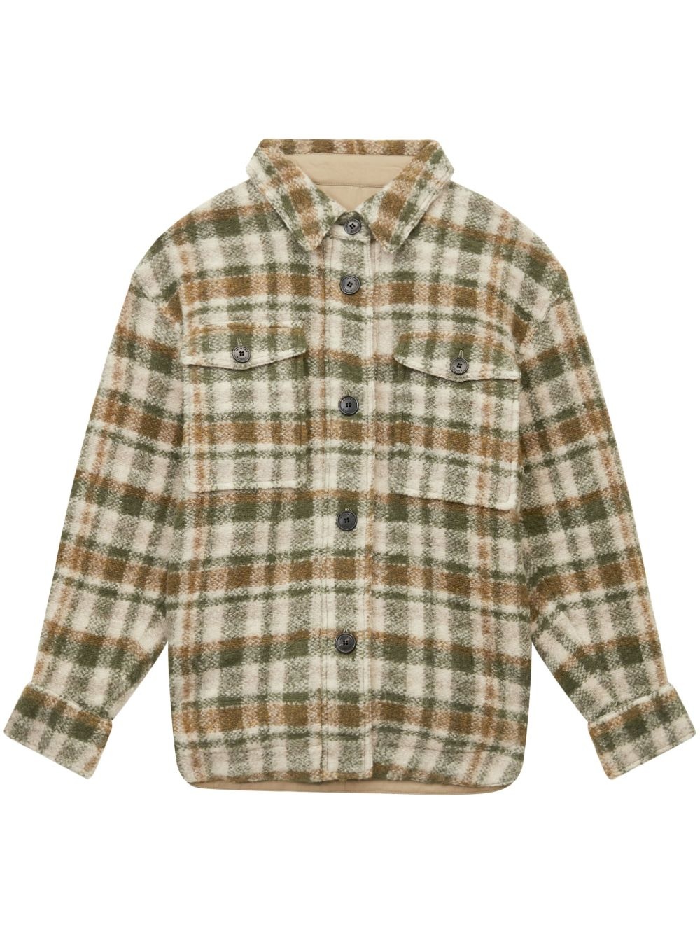 Harveli coat Highlights - Khaki - Wool blend - Check pattern - Embroidered logo to the rear - Classic collar - Drop shoulder - Long sleeves - Buttoned cuffs - Front button fastening - Two chest flap pockets - Straight hem - Unlined Imported Composition Outer: Wool 63%, Polyester 33%, Other fibres 4% Lining: Cotton 100%, Polyester 100%