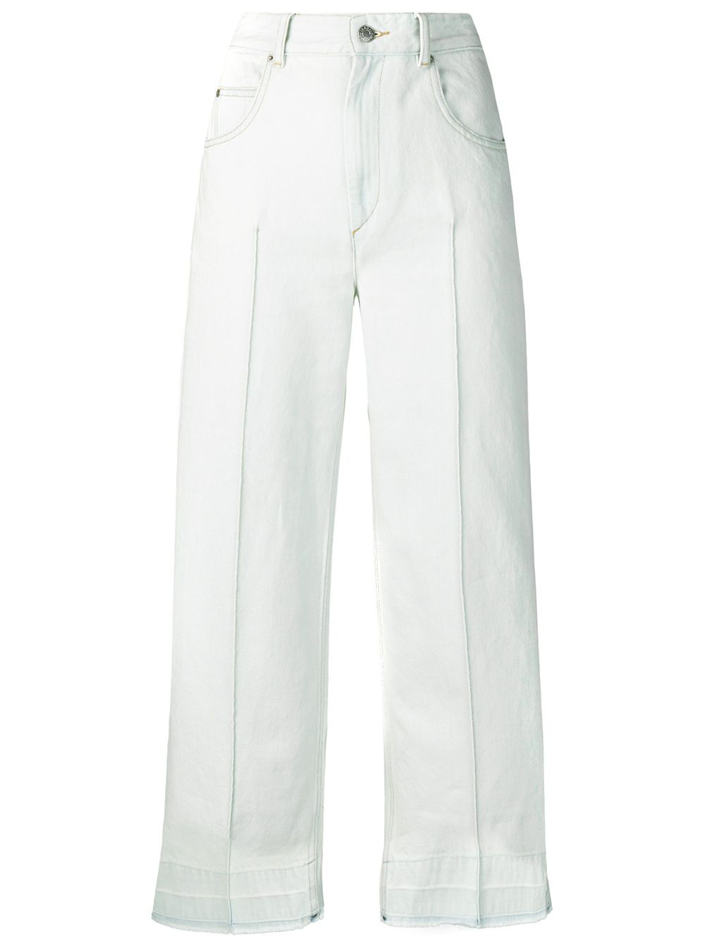 high-waisted cropped jeans Isabel Marant Etoile epitomises the effortless and carefree styling of the Parisian youth. Silhouettes are a perfect blend of girlish charm and tomboy fit, as comfortable everyday staples are elevated by unique details. These light blue cotton high-waisted cropped jeans from Isabel Marant Etoile are a modern-classic staple, featuring a waistband with belt loops, a wide leg, piped seams to the front, frayed edges and a five pocket design. Imported Composition Lining: Cotton 100% Outer: Cotton 100% SIZE & FIT Model measurements Height 5 ft 9 in(1.76 m) Bust/Chest 33.07 in(84 cm) Hips 35.03 in(89 cm) Waist 24.4 in(62 cm) Washing instructions Machine Wash