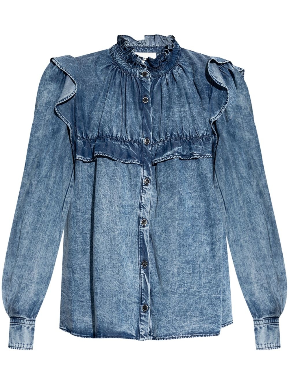Idety shirt Highlights - Blue - Lyocell - Denim - Acid wash - Yoke design - Pleat detailing - Ruffle collar - Front button fastening - Long sleeves - Buttoned cuffs - Straight hem Imported Composition Lyocell 100% SIZE & FIT FittingInformation Designed for a relaxed fit, this piece allows for comfort and movement when worn Made from a midweight non-stretch fabric