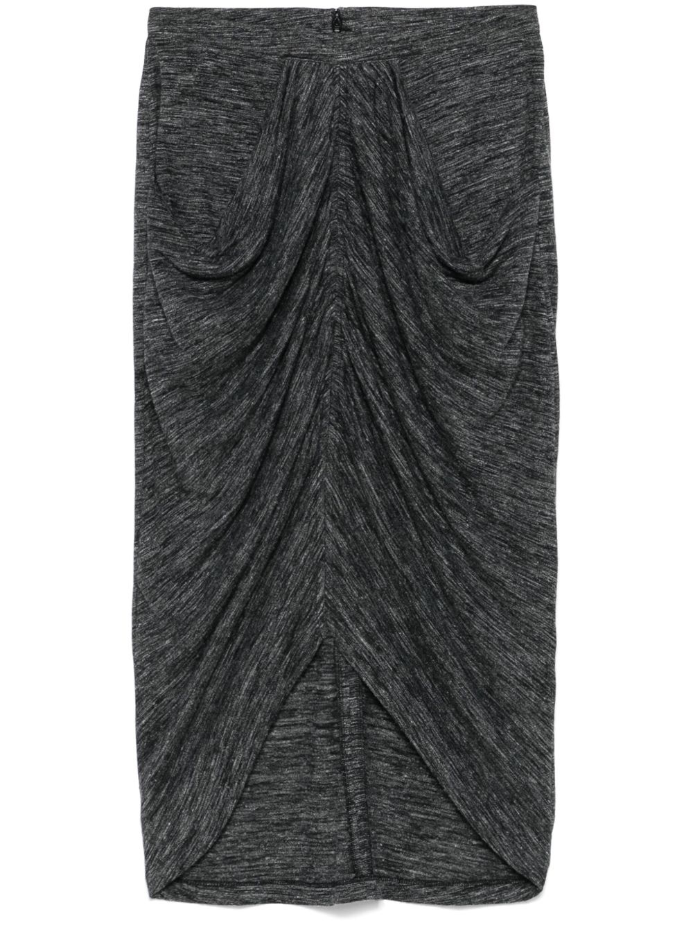 Ilis midi skirt Highlights - Anthracite grey - Lightweight jersey - Melange effect - Concealed rear zip fastening - Ruched detailing - Two side slash pockets - Draped detailing - Mid-length Imported Composition Polyamide 50%, Linen/Flax 30%, Virgin Wool 20% SIZE & FIT Model measurements Height 5 ft 9 in(1.75 m) Bust/Chest 30.7 in(78 cm) Hips 36.22 in(92 cm) Waist 25.98 in(66 cm) FittingInformation This midi-length skirt is intended to be worn just below the waist Made from a lightweight non-stretch fabric, this piece offers minimal elasticity when worn