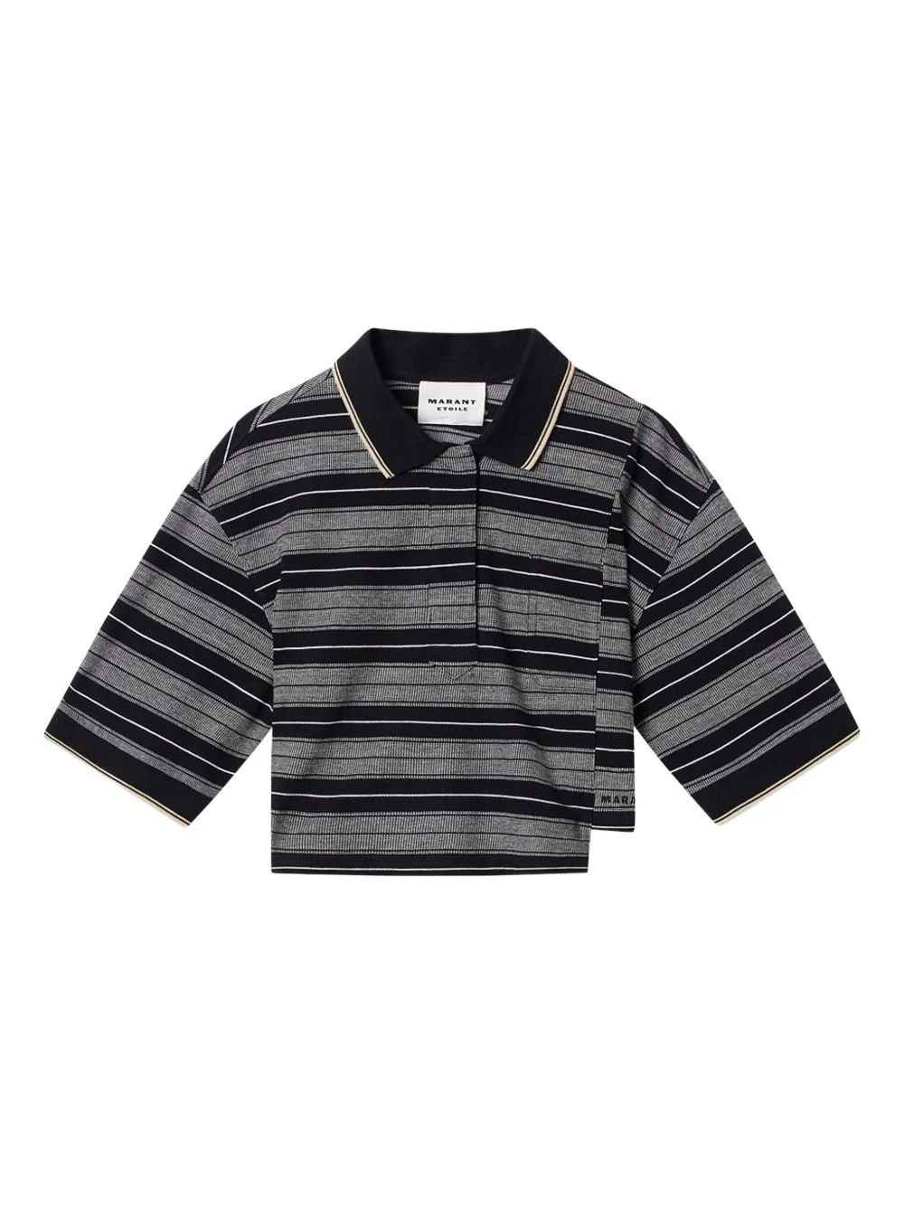Isalyne striped polo top Highlights - Black - Striped - Collar - Short sleeves - Chest pocket - Polo neck Imported Composition Cotton 100% Washing instructions Read Manufacturer Guidelines