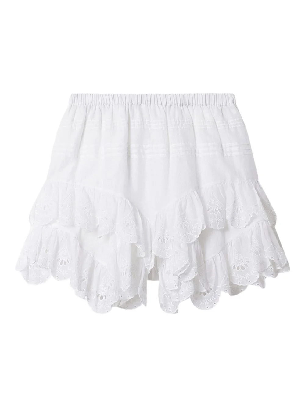 Jocadia ruffled shorts Highlights - White - Lace detail - Ruffled tiers - Embroidery - Elasticated waistband - Scalloped hem Imported Composition Cotton 100% Washing instructions Read Manufacturer Guidelines