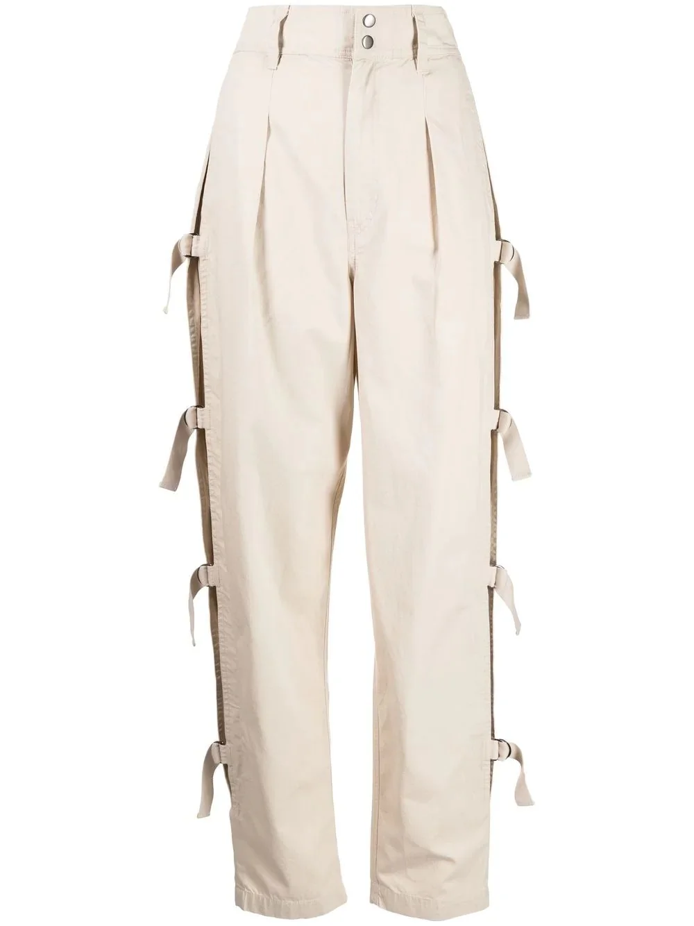 Keowina tapered-leg trousers off-white cotton tapered leg front button and zip fastening pleat detailing belt loops two rear welt pockets Imported Composition Cotton 100% SIZE & FIT Measurement INSIDE LEG 29.92 in(76 cm) HIPS 37.79 in(96 cm) WAIST 29.13 in(74 cm) Washing instructions Machine Wash