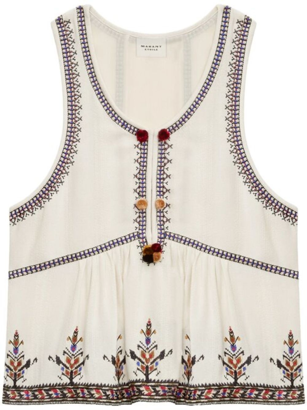 Kourtney top Highlights - White - Front hook and eye fastening - Embroidered design - Pompom detail - Sleeveless Imported Composition Lining: Viscose 100% Outer: Viscose 100%