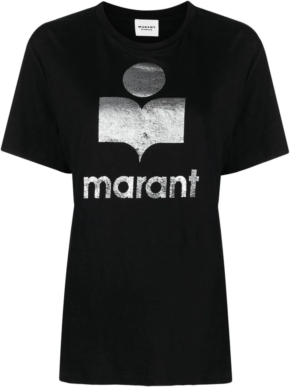 Zewel logo-print T-shirt Showcasing Isabel Marant Etoile's signature effortless style, this T-shirt is cut to a relaxed short-sleeve silhouette and detailed with a contrasting logo print to the front. Highlights - Black/silver-tone - Linen - Logo print to the front - Crew neck - Short sleeves Imported Composition Linen/Flax 100% SIZE & FIT Model measurements Height 5 ft 10 in(1.77 m) Bust/Chest 32.67 in(83 cm) Hips 35.43 in(90 cm) Waist 23.62 in(60 cm) FittingInformation This piece fits true to size. We recommend you get your regular size Cut for a loose fit Made with a mid-weight fabric Washing instructions Hand Wash