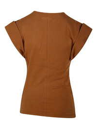 Maisan draped cap-sleeve top Highlights - Caramel brown - Draped design - Cap sleeves - Slash neckline - Twisted front Imported Composition Cotton 100% Washing instructions Read Manufacturer Guidelines
