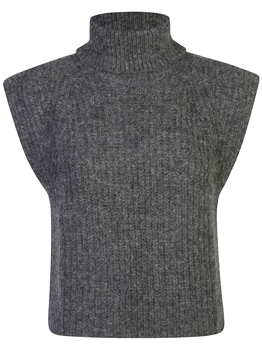 Megan vest Highlights - Dark grey - Alpaca wool-blend - Knitted construction - Brushed effect - Strap detailing - Roll neck - Sleeveless - Open sides - Step hem Imported Composition Alpaca Wool 63%, Polyamide 32%, Elastane 5% SIZE & FIT FittingInformation Designed to be unstructured, offering a loose fit throughout Made with a midweight knit, this piece offers some stretch Washing instructions Read Manufacturer Guidelines