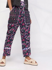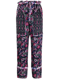 mix-print straight-leg ankle trousers Speaking to the brand's Parisian roots, these Isabel Marant Etoile trousers exude effortless elegance. Designed with a bold mix-print throughout, they feature four external pockets and a drawstring fastening waist. Imported Composition Outer: Viscose 100% Lining: Viscose 100% SIZE & FIT Model measurements Height 5 ft 11 in(1.8 m) Bust/Chest 31.49 in(80 cm) Hips 35.82 in(91 cm) Waist 24.8 in(63 cm) Measurement INSIDE LEG 27.95 in(71 cm) HIPS 91.33 in(232 cm) WAIST 69.29 in(176 cm) FittingInformation This piece fits true to size. We recommend you get your regular size Designed to be fitted at the waist, loose over the leg Made with a mid-weight non-stretch fabric Washing instructions Dry Clean Only