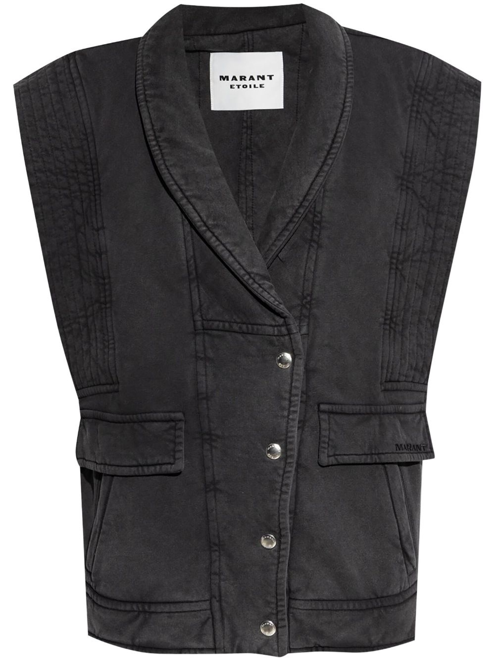 Naelle vest Highlights - Faded black - Cotton - Padded design - Front press-stud fastening - V-neck - Shawl collar - Sleeveless - Quilted edge - Two side flap pockets - Logo print to the side - Straight hem Imported Composition Cotton 100% Washing instructions Read Manufacturer Guidelines