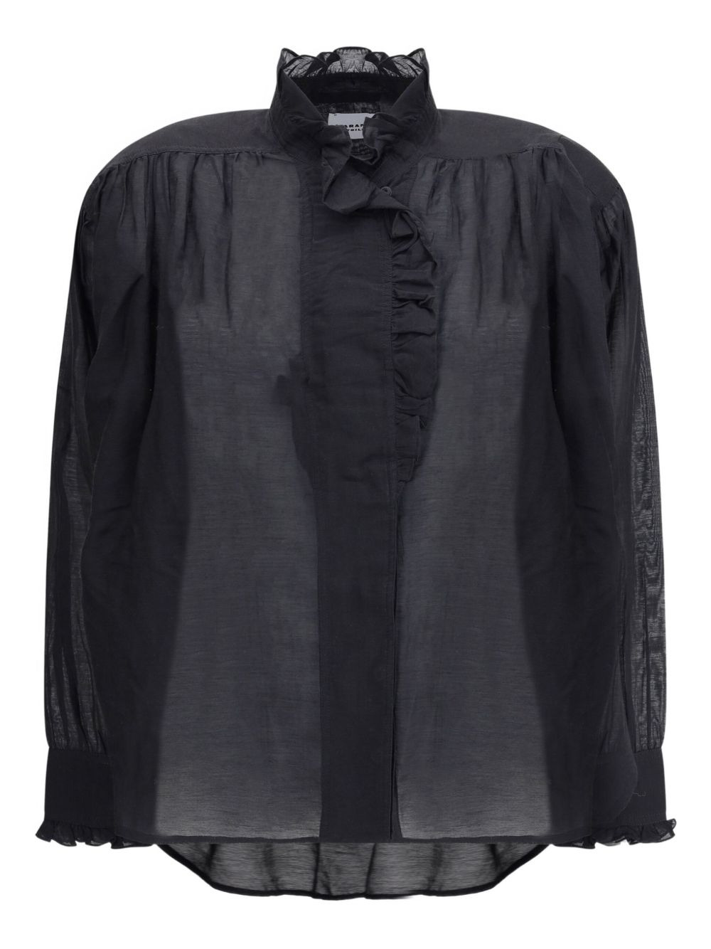 Pamias ruffled top Highlights - Black - Ruffled front - Long sleeves - Button fastening - Ruffled cuffs Imported Composition Cotton 100% Washing instructions Read Manufacturer Guidelines