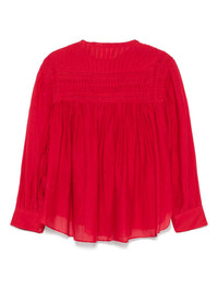 Plalia blouse Highlights - Blood red - Front button fastening - Long sleeves - Buttoned cuffs Imported Composition Organic Cotton 80%, Viscose 20% Washing instructions Dry Clean Only