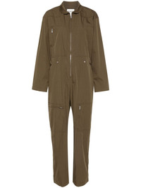 Rabbia jumpsuit Highlights - Khaki - Organic cotton blend - Textured finish - Rounded collar - Long sleeves - Chest welt pocket - Zip-fastening chest pocket - Adjustable waist strap - Two side welt pockets - Front two-way zip fastening - Two rear patch pockets - Tapered leg - Front zip fastening Imported Composition Organic Cotton 80%, Recycled Polyamide 20% SIZE & FIT Model measurements Height 5 ft 9 in(1.75 m) Bust/Chest 34.64 in(88 cm) Hips 36.61 in(93 cm) Waist 26.37 in(67 cm) FittingInformation Designed to be unstructured, offering a loose fit throughout Made from a midweight non-stretch fabric This piece fits true to size – take your usual size