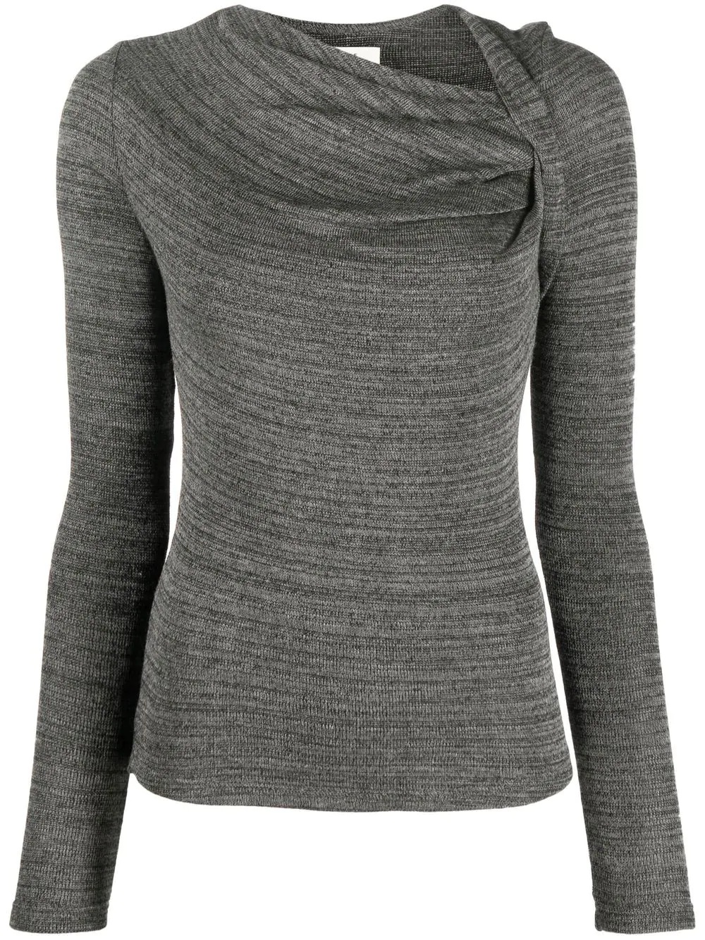 ruched-neck knitted top grey stretch-design ruched detailing long sleeves Imported Composition Viscose 91%, Polyamide 7%, Spandex/Elastane 2% SIZE & FIT Model measurements Height 5 ft 10 in(1.78 m) Bust/Chest 30.31 in(77 cm) Hips 36.61 in(93 cm) Waist 24.8 in(63 cm) FittingInformation This piece fits true to size. We recommend you get your regular size Cut for a slim fit Made with a mid-weight stretch fabric Washing instructions Machine Wash