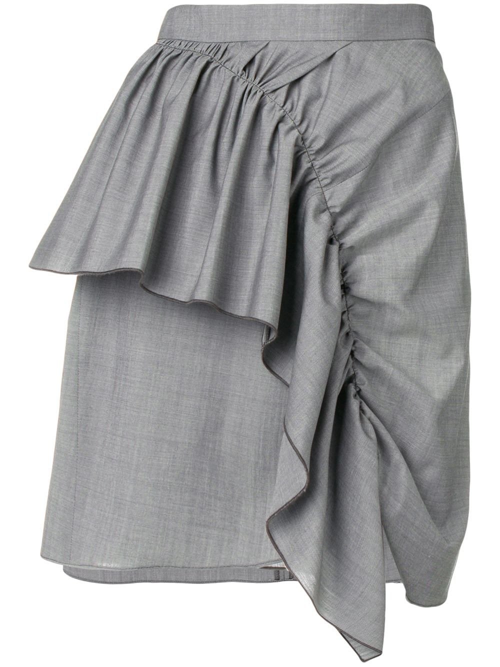 ruffle trim mini skirt The Isabel Marant Etoile collection is close to the designer's heart, as the pieces take inspiration from her own personal wardrobe. Expect comfortable, care-free silhouettes fused with the label’s refined feminine elegance. This grey ruffle trim mini skirt is crafted from virgin wool and cotton and features a high rise, a short length and a concealed rear zip fastening. Imported Composition Lining: Cotton 100% Outer: Virgin Wool 100% SIZE & FIT Model measurements Height 5 ft 10 in(1.79 m) Bust/Chest 33.46 in(85 cm) Hips 35.43 in(90 cm) Waist 25.19 in(64 cm) Washing instructions Dry Clean Only