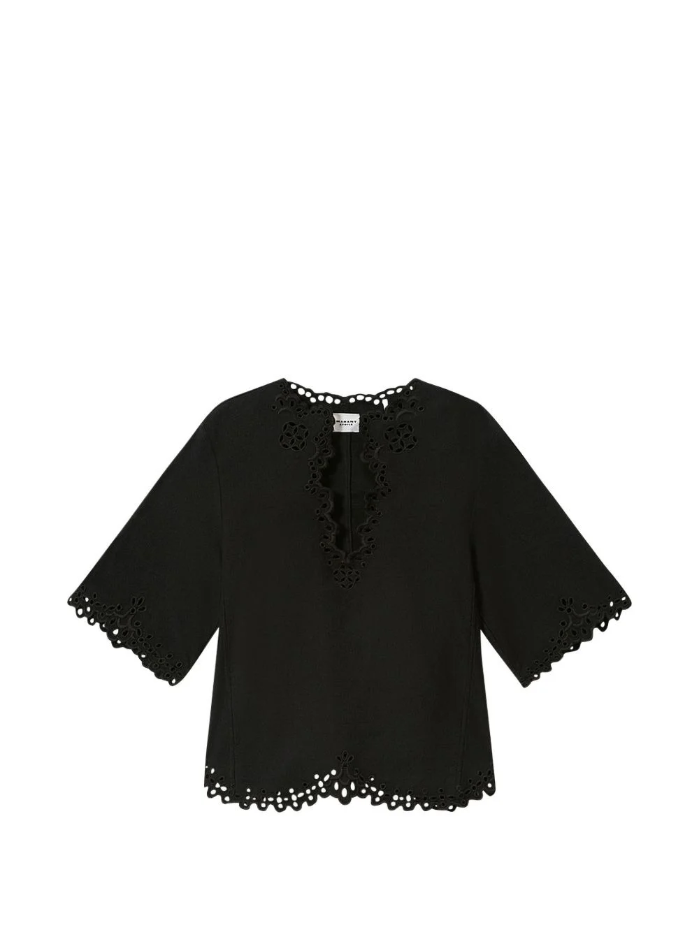 Shana blouse Highlights - Black - Short sleeves - V-neck Imported Composition Cotton 100% Washing instructions Read Manufacturer Guidelines