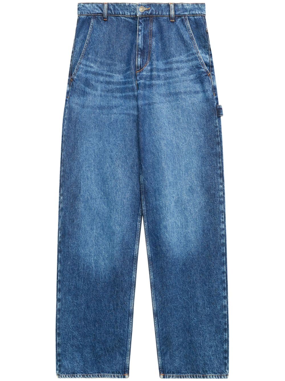 Solene wide-leg jeans Highlights - Blue - Denim - Mid-wash - Whiskering effect at the thighs - High-rise - Logo patch to the rear - Belt loops - Strap detailing - Wide leg - Front button and zip fastening - Slip pockets to the sides - Two rear patch pockets Imported Composition Denim 100%