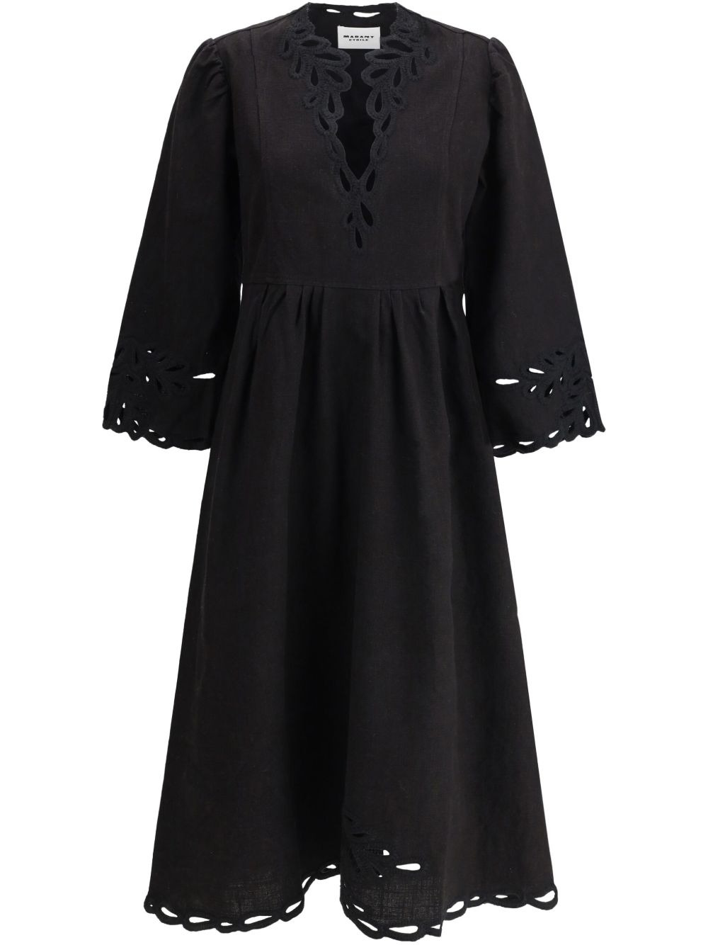 Tianny dress Highlights - Black - V-neck - Lace trim - Cut-out detailing - Bell sleeves Imported Composition Linen/Flax 100% Washing instructions Read Manufacturer Guidelines
