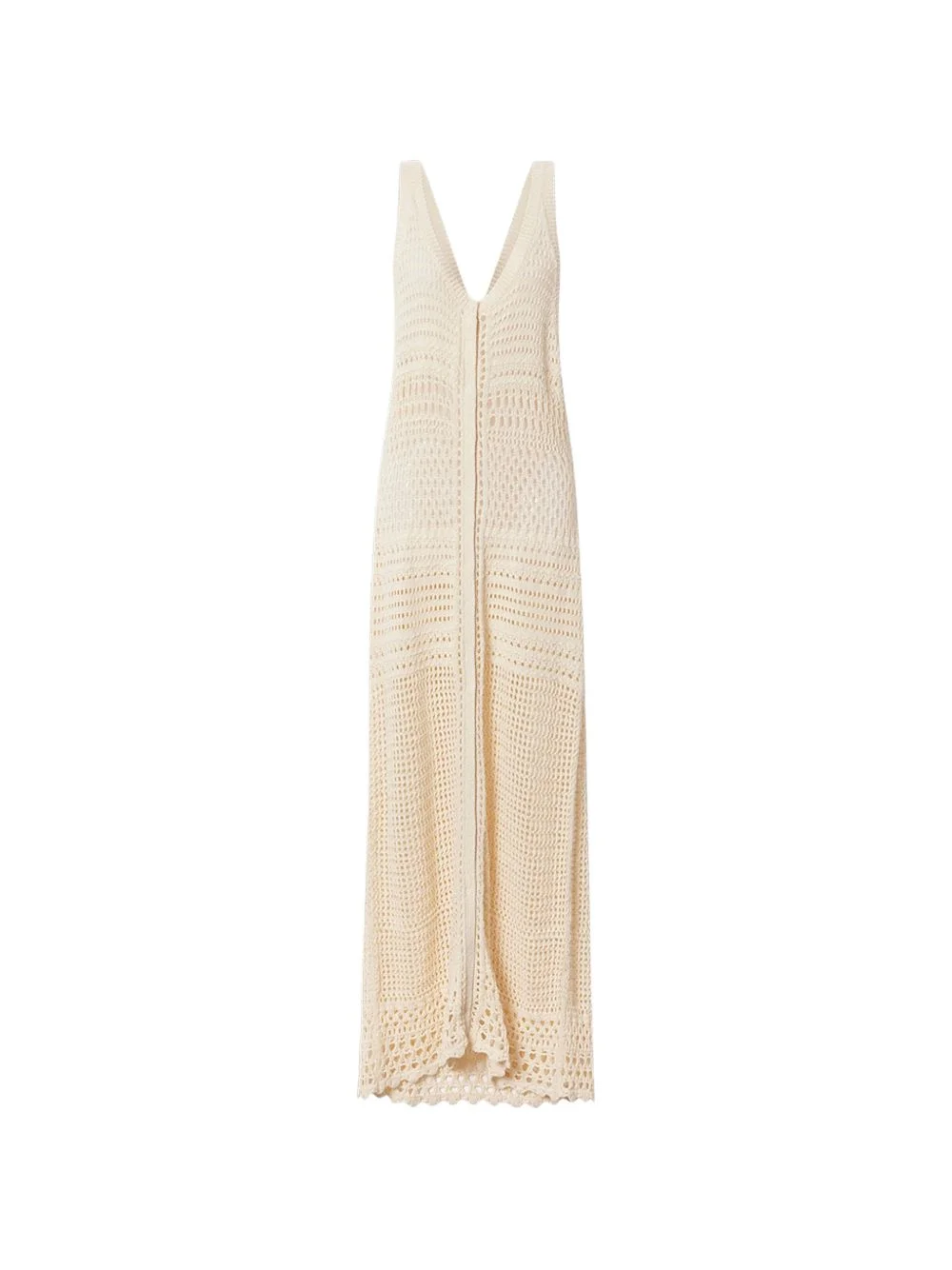 Zaro V-neck crochet maxi dress Highlights - Ecru - Crochet knit - V-neck - Sleeveless - Front slit - Cotton Imported Composition Cotton 65%, Polyamide 30%, Linen/Flax 5% Washing instructions Read Manufacturer Guidelines