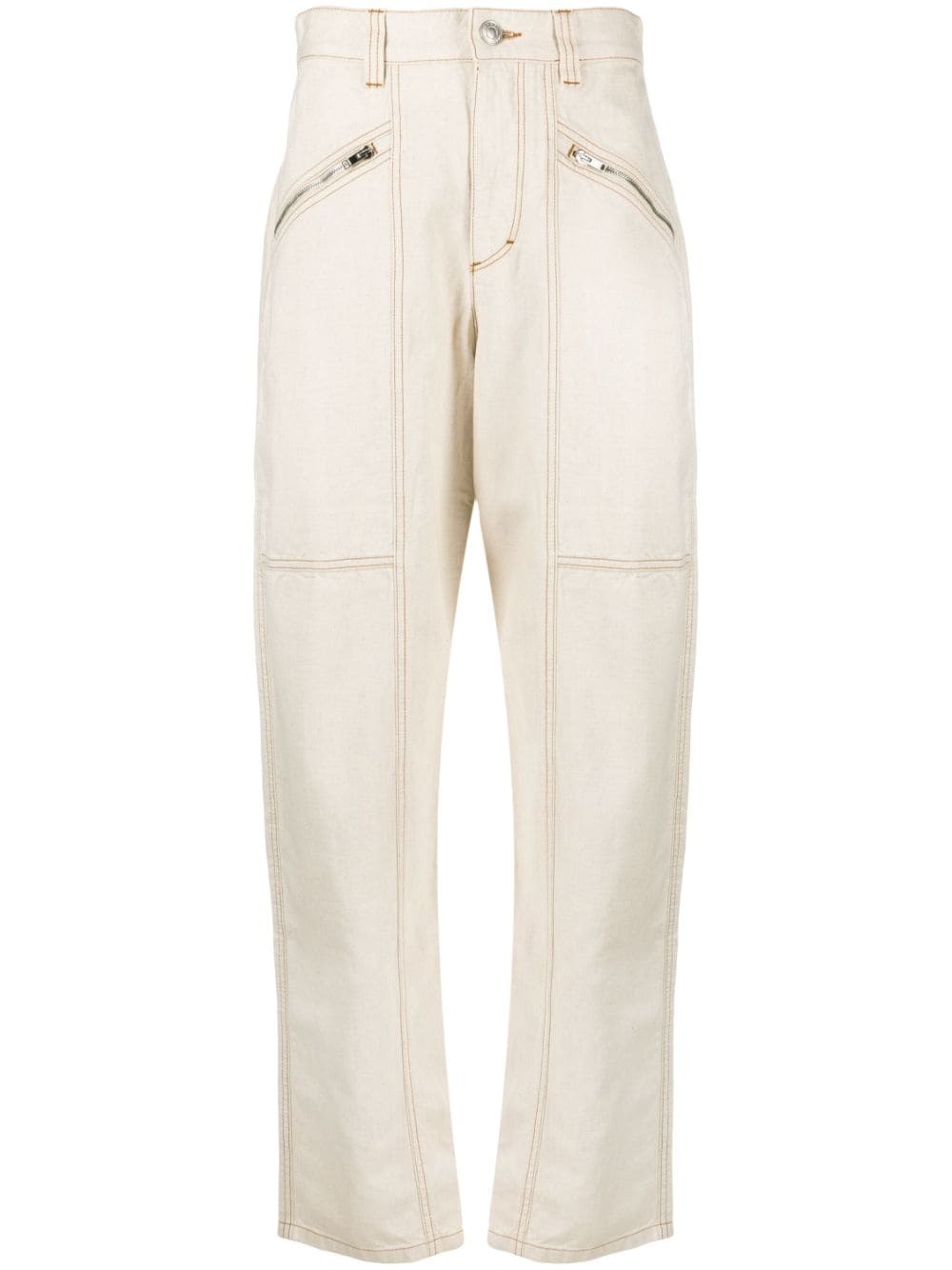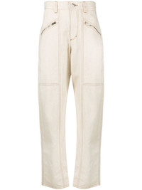 Fanny straight-leg cargo trousers These straight-leg trousers speak to ISABEL MARANT’s utilitarian aesthetic: note the exposed seams and zip-fastening pockets. They’re crafted from lightweight ecru denim. Highlights - Ecru - Cotton blend - Denim - Exposed-seam detailing - High-waisted - Concealed fly and button fastening - Two side zip-fastening pockets - Two rear patch pockets - Straight leg Imported Composition Lining: Polyester 65%, Cotton 35% Outer: Cotton 80%, Hemp 20% SIZE & FIT Model measurements Height 5 ft 10 in(1.77 m) Bust/Chest 32.67 in(83 cm) Hips 35.43 in(90 cm) Waist 23.62 in(60 cm) Measurement FRONT RISE 12.99 in(33 cm) HIPS 41.73 in(106 cm) WAIST 28.34 in(72 cm) FittingInformation Designed for a tapered fit, these jeans allow a close fit at the waist and a loose unrestricted fit over the leg with a closer fit towards the ankle Sturdy and hard-wearing, this denim piece offers no stretch This piece fits true to size – take your usual size Washing instructions Machine Wash