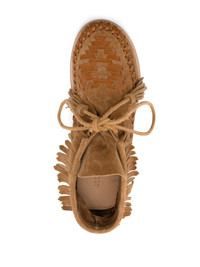 Felsa fringed tasseled leather-trimmed suede ankle boots Taupe
