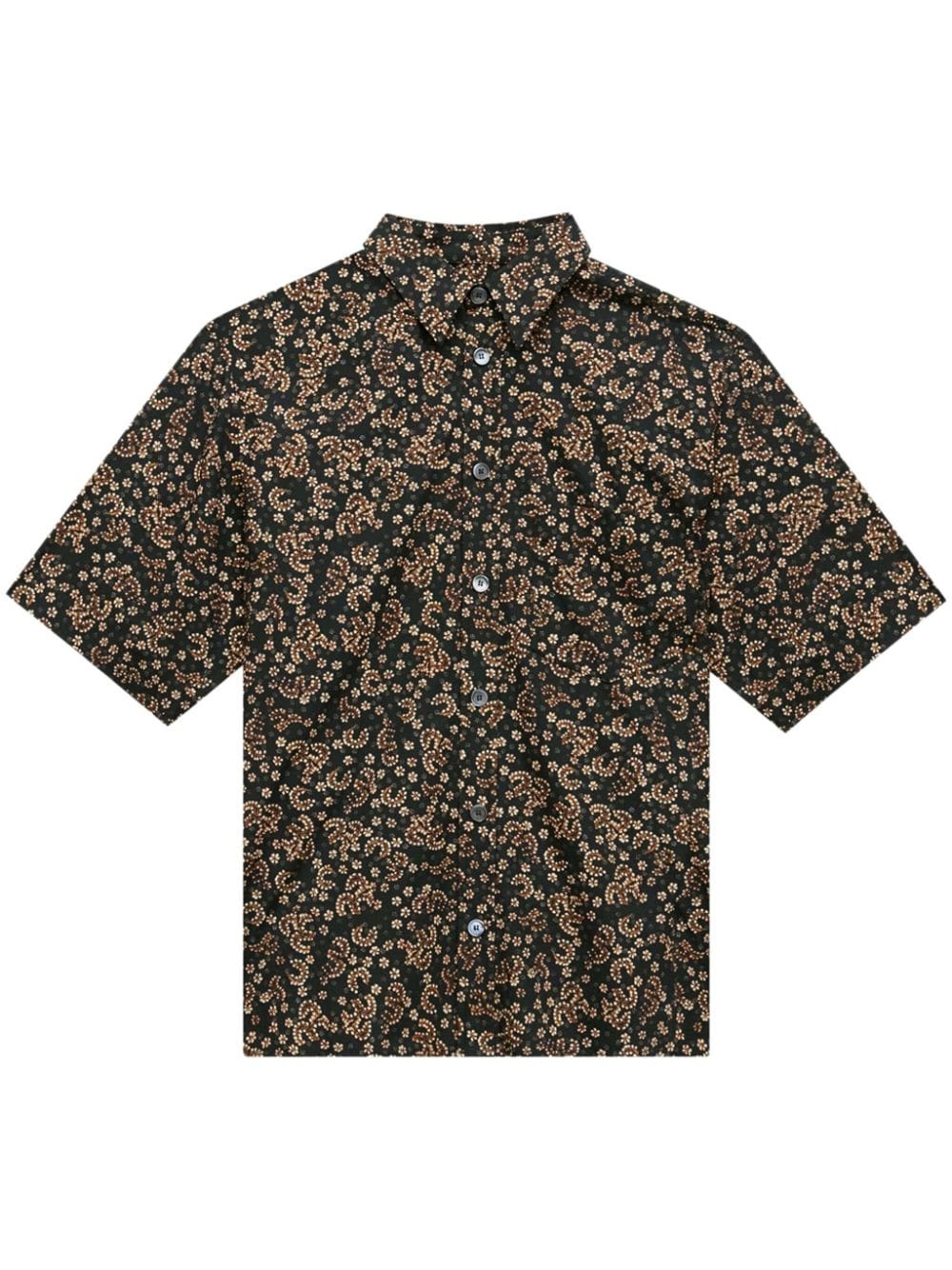 Labilio floral-print shirt Highlights - Black/beige/brown - All-over floral print - Paisley print - Spread collar - Front button fastening - Drop shoulder - Short sleeves - Chest patch pocket - Straight hem Imported Composition Fabric 100%