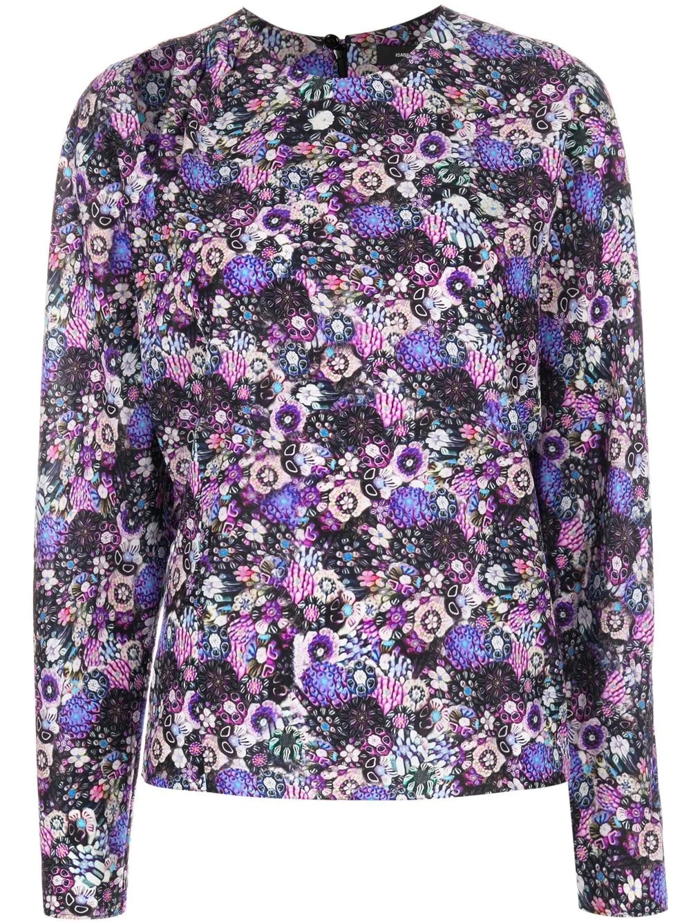 floral-print stretch-silk blouse floral-print stretch-silk blouse from ISABEL MARANT featuring ultra violet, stretch-silk, all-over floral print, round neck, long sleeves and rear zip fastening. Imported Composition Silk 91%, Spandex/Elastane 9% SIZE & FIT Model measurements Height 5 ft 11 in(1.8 m) Bust/Chest 33.07 in(84 cm) Hips 37.4 in(95 cm) Waist 25.19 in(64 cm) FittingInformation This piece fits true to size. We recommend you get your regular size Cut for a loose fit Made with a lightweight stretch fabric Washing instructions Dry Clean Only