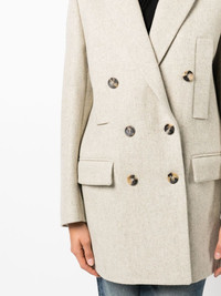 Floyd double-breasted blazer Highlights - Sand beige - Tonal stitching - Notched lapels - Double-breasted button fastening - Long sleeves - Buttoned cuffs - Chest welt pocket - Two front flap pockets - Central rear vent - Straight hem Imported Composition Outer: Organic Wool 70%, Recycled Wool 30% Lining: Polyester 100%, Cotton 100%, Wool 70%, Acetate 66%, Viscose 34%, goat hair 30% SIZE & FIT Model measurements Height 5 ft 11 in(1.8 m) Bust/Chest 31.49 in(80 cm) Hips 35.43 in(90 cm) Waist 24.4 in(62 cm) Measurement SLEEVE LENGTH 17.51 in(44.5 cm) LENGTH 33.07 in(84 cm) WAIST 42.51 in(108 cm) BUST 43.3 in(110 cm) FittingInformation Designed for a slim fit that sits just away from the body offering a close yet comfortable fit The vented hem offers movement at the rear Made from a midweight non-stretch fabric This piece fits true to size – take your usual size