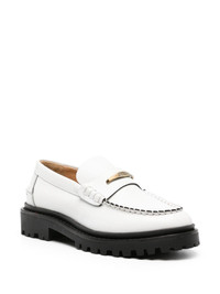 Frezza leather loafers Highlights - White/black - Calf leather - Gold-tone logo plaque - Strap detailing - Slip-on style - Round toe - Leather lining - Branded insole - Chunky rubber lug sole - This piece comes complete with a protective dust bag. Imported Composition Leather 100% SIZE & FIT Measurement HEEL 1.37 in(3.5 cm) Sole height 0.78 in(2 cm)