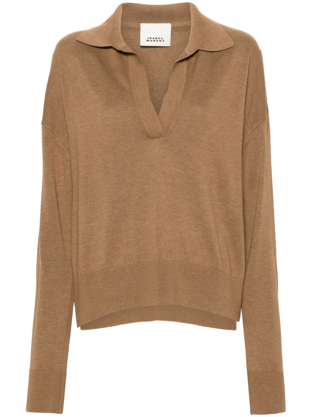 Galix spread-collar jumper Highlights - Camel brown - Ribbed knit - Embroidered logo to the rear - Spread collar - Split neck - Drop shoulder - Long sleeves - Straight hem Imported Composition Viscose 70%, Wool 30% SIZE & FIT Model measurements Height 5 ft 10 in(1.78 m) Bust/Chest 31.49 in(80 cm) Hips 35.03 in(89 cm) Waist 23.62 in(60 cm) FittingInformation Designed to be unstructured, offering a loose fit throughout Made with a midweight knit, this piece offers some stretch This piece fits true to size – take your usual size Washing instructions Hand Wash