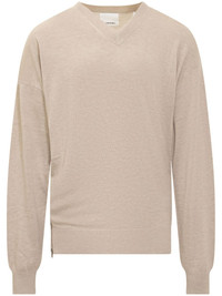 Garey jumper Highlights - Light beige - Ribbed trim - V-neck - Long sleeves Imported Composition Viscose 70%, Wool 30%