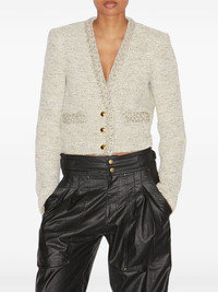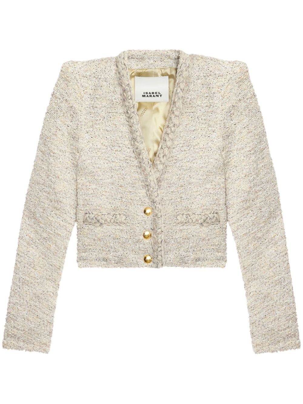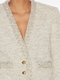 Gwendoline jacket Highlights - Ecru - Tweed - Front button fastening - Plunging v-neck - Braided edge - Shoulder pads - Long sleeves - Two front welt pockets - Piped-trim detailing - Straight hem - Cropped Imported Composition Wool 100%