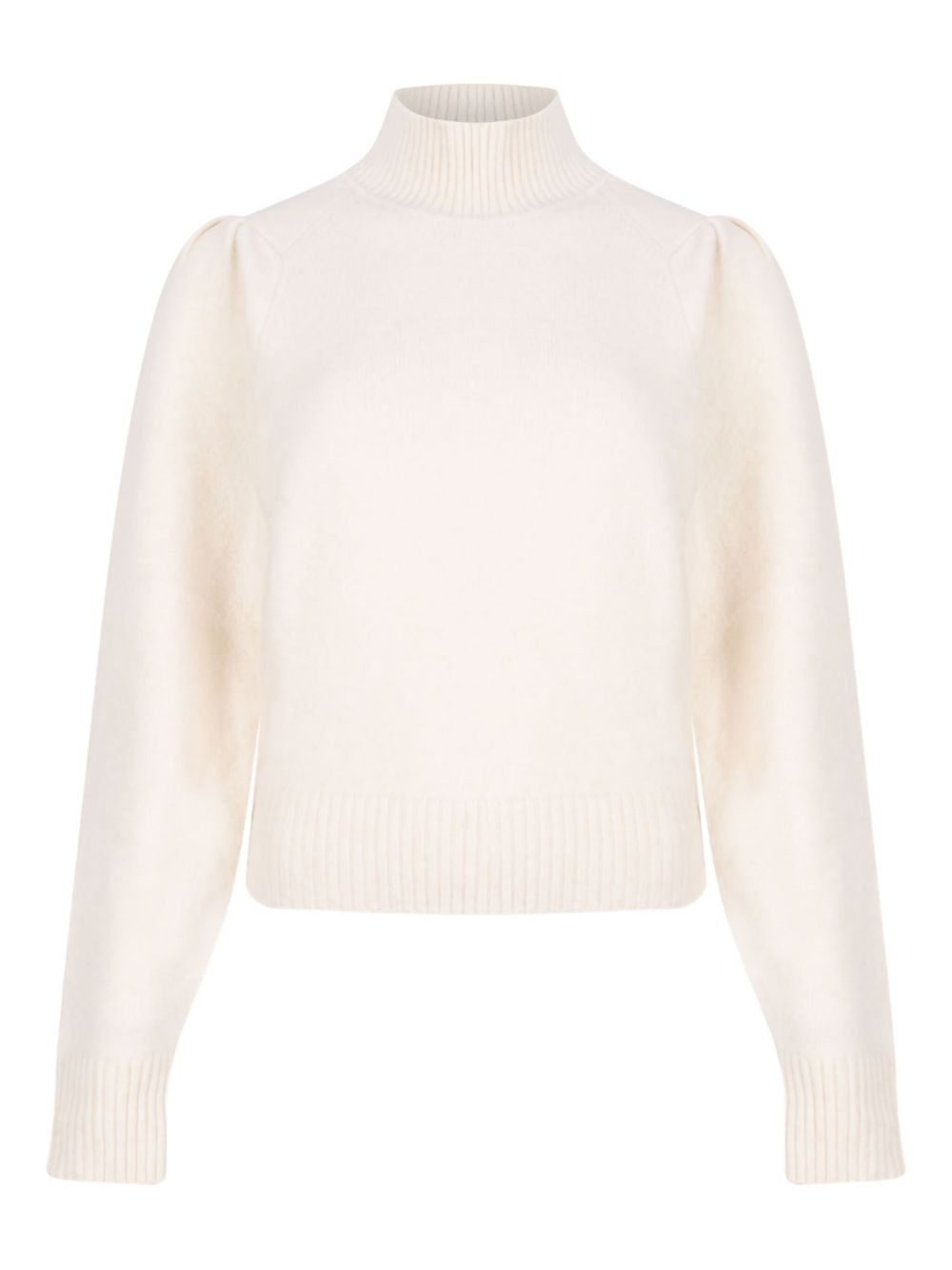 high-neck puff-sleeve sweater Highlights - Off-white - High neck - Puff sleeves - Ribbed cuffs - Ribbed hem Imported Composition Alpaca 62%, Polyamide 33%, Elastane 5% Washing instructions Read Manufacturer Guidelines
