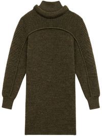 Hilde dress Highlights - Dark khaki - Wool - Knitted construction - Ribbed panelling - High neck - Rolled collar - Long sleeves - Ribbed cuffs - Straight hem Imported Composition Wool 100%