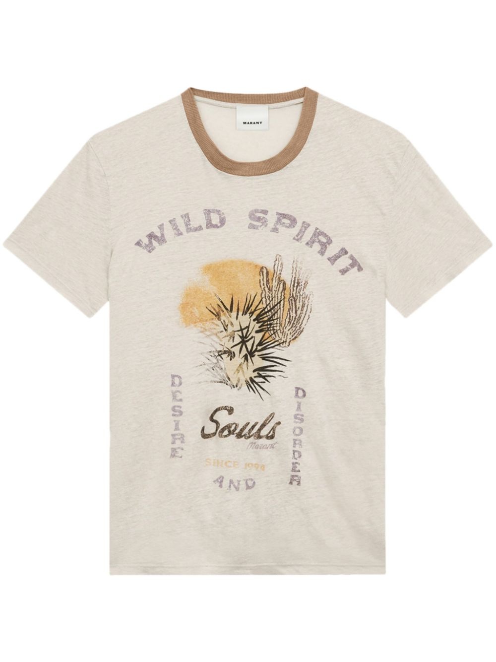 Honore T-shirt Highlights - Beige - Linen/flax - Crew neck - Melange effect - Slogan print to the front - Graphic print to the front - Short sleeves - Straight hem Imported Composition Linen/Flax 100%