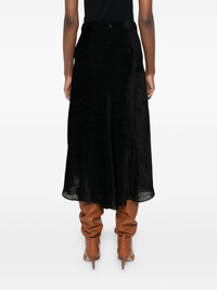 Hortensia midi skirt Highlights - Black - Silk blend - Flocked finish - Abstract pattern print - Concealed rear hook and zip fastening - Flared skirt - Asymmetric hem - Full lining - Mid-calf length Imported Composition Outer: Silk 78%, Viscose 22% Lining: Silk 100% SIZE & FIT FittingInformation This midi-length skirt is intended to be worn high on the waist Made from a midweight non-stretch fabric