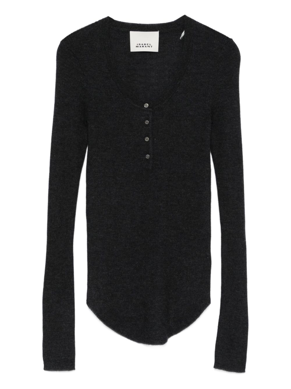 Idite button-front top Highlights - Grey - Ribbed knit - Long sleeves - Curved hem - Round neck - Button placket Imported Composition Cashmere 69%, Silk 30%, Elastane 1% SIZE & FIT Model measurements Height 5 ft 9 in(1.75 m) Bust/Chest 34.64 in(88 cm) Hips 36.61 in(93 cm) Waist 26.37 in(67 cm) FittingInformation Designed for a close fit throughout Made with a lightweight knit, this piece offers some stretch Washing instructions Dry Clean Only
