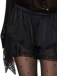 Ildana lace-trimmed shorts Highlights - Black - Stretch-silk - Layered design - Lace trim - Asymmetric hem - Side slit pockets Imported Composition Silk 90%, Elastane 10% Washing instructions Read Manufacturer Guidelines