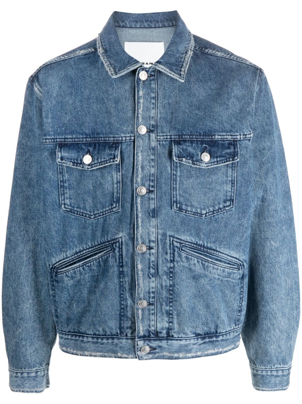 Jango logo-embroidered denim jacket Highlights - Indigo blue - Cotton - Denim - Faded effect - Embroidered logo to the rear - Classic collar - Front button fastening - Long sleeves - Buttoned cuffs - Two front flap pockets - Two front jetted pockets - Straight hem Made in Italy Composition Outer: Cotton 100% Lining: Polyester 65%, Cotton 35% SIZE & FIT Model measurements Height 6 ft 1 in(1.85 m) Bust/Chest 36.22 in(92 cm) Hips 36.22 in(92 cm) Waist 27.55 in(70 cm) FittingInformation Designed for a relaxed fit, this piece allows for comfort and movement when worn Sturdy and hard-wearing, this denim piece offers no stretch This piece fits true to size – take your usual size Washing instructions Machine Wash