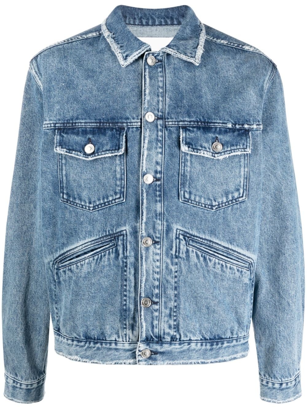 Jango logo-embroidered denim jacket An embroidered logo adorns the back of this blue iteration of the Jango jacket, cut from rigid cotton denim. A nod to Isabel Marant's youthful and contemporary identity, its relaxed silhouette is fitted with pockets at the chest and front. Highlights - Light blue - Cotton - Classic collar - Front button fastening - Two chest flap pockets - Two front welt pockets - Drop shoulder - Long sleeves - Buttoned cuffs - Embroidered logo to the rear Imported Composition Outer: Cotton 100%, Polyester 100% Lining: Polyester 65%, Cotton 35% SIZE & FIT Model measurements Height 6 ft 1 in(1.85 m) Bust/Chest 38.58 in(98 cm) Hips 37 in(94 cm) Waist 30.31 in(77 cm) FittingInformation Designed to be unstructured, offering a loose fit throughout The adjustable tabs allow for fitted preferences Sturdy and hard-wearing, this denim piece offers no stretch This piece fits true to size – take your usual size