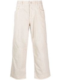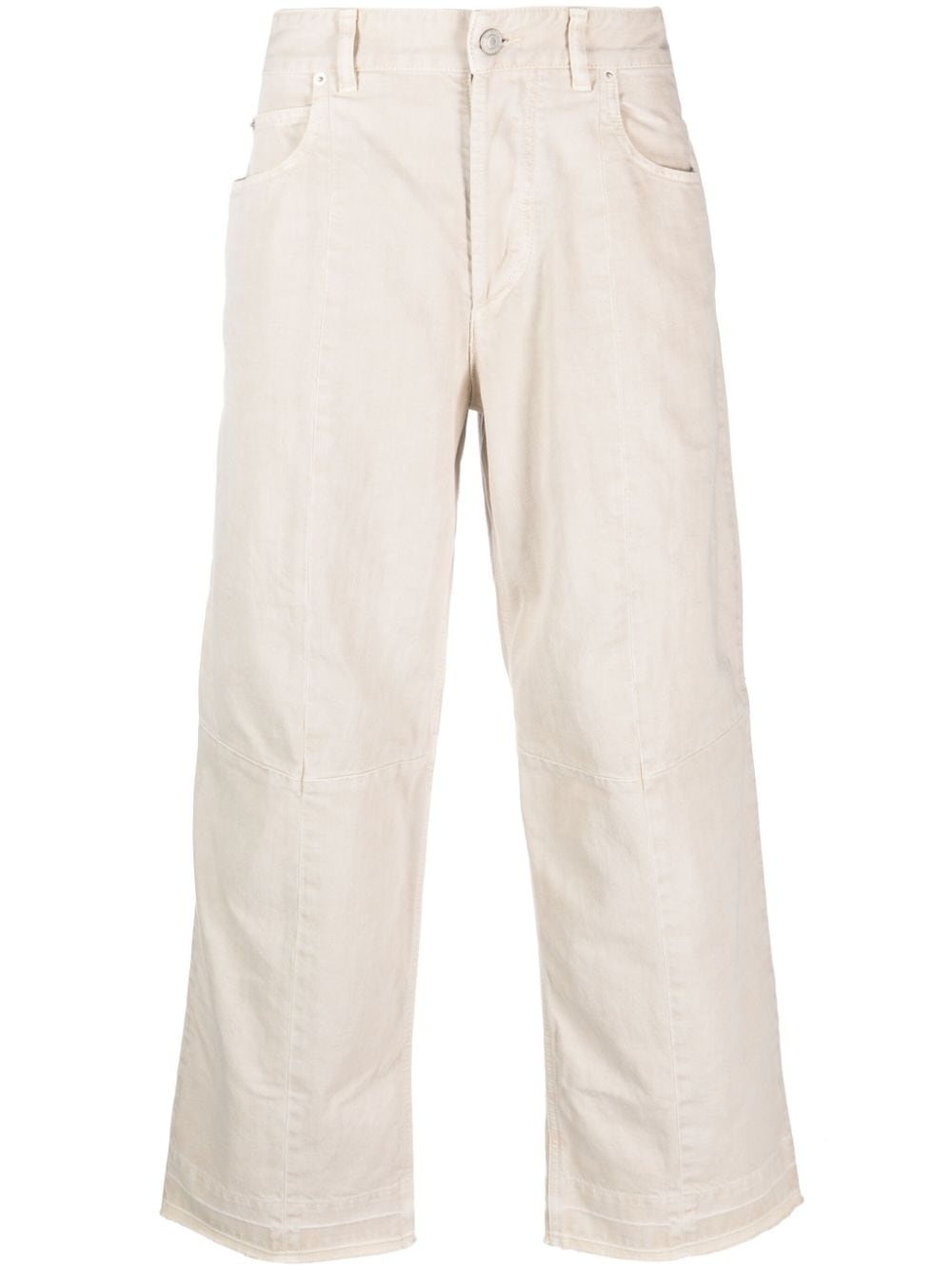 Jorel wide-leg trousers Highlights - Off-white - Cotton - Panelled design - Logo patch to the rear - Straight leg - Mid-rise - Belt loops - Front button and zip fastening - Classic five pockets Imported Composition Outer: Cotton 100% Lining: Cotton 100% SIZE & FIT Model measurements Height 6 ft 0 in(1.84 m) Bust/Chest 34.64 in(88 cm) Hips 35.03 in(89 cm) Waist 27.95 in(71 cm) FittingInformation Designed for a straight-leg, allowing for an unrestricted and comfortable fit over the leg Sturdy and hard-wearing, this denim piece offers no stretch This piece fits true to size – take your usual size Washing instructions Machine Wash