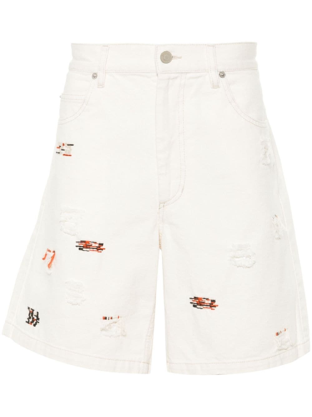 Jerryl denim shorts Highlights - Off-white - Organic cotton blend - Denim - Distressed effect - Embroidered motif - Classic five pockets - Logo patch to the rear - Front button and zip fastening Imported Composition Outer: Organic Cotton 80%, Hemp 20% Lining: Cotton 100% SIZE & FIT Model measurements Height 6 ft 2 in(1.88 m) Bust/Chest 35.43 in(90 cm) Hips 35.03 in(89 cm) Waist 27.95 in(71 cm) FittingInformation Designed with a wide leg, offering a loose and roomy fit Sturdy and hard-wearing, this denim piece offers no stretch This piece fits true to size – take your usual size