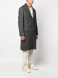 Johel recycled wool-blend coat Spun from a blend of recycled wool, Isabel Marant's Johel single-breasted coat is woven into a timeless herringbone pattern that speaks to the brand's penchant classic take on outerwear. Cut to a relaxed silhouette, it is fitted with tailoring-inspired notch lapels. Highlights - Anthracite grey - Recycled wool blend - Herringbone pattern - Notched lapels - Front button fastening - Chest welt pocket - Two side flap pockets - Long sleeves - Buttoned cuffs - Central rear vent - Mid-calf length Made in Italy Composition Outer: Recycled Wool 55%, Polyamide 30%, Wool 15% Lining: Viscose 100%, Cotton 100% SIZE & FIT Model measurements Height 6 ft 2 in(1.89 m) Bust/Chest 37.4 in(95 cm) Hips 35.03 in(89 cm) Waist 27.95 in(71 cm) FittingInformation Designed for a boxy fit, intended for a loose fit throughout The internal shoulder pads offer a structured shape Made from a midweight non-stretch fabric This piece fits true to size – take your usual size